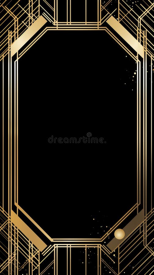 An Art Deco Style Black And Gold Background With A Gold Frame Stock